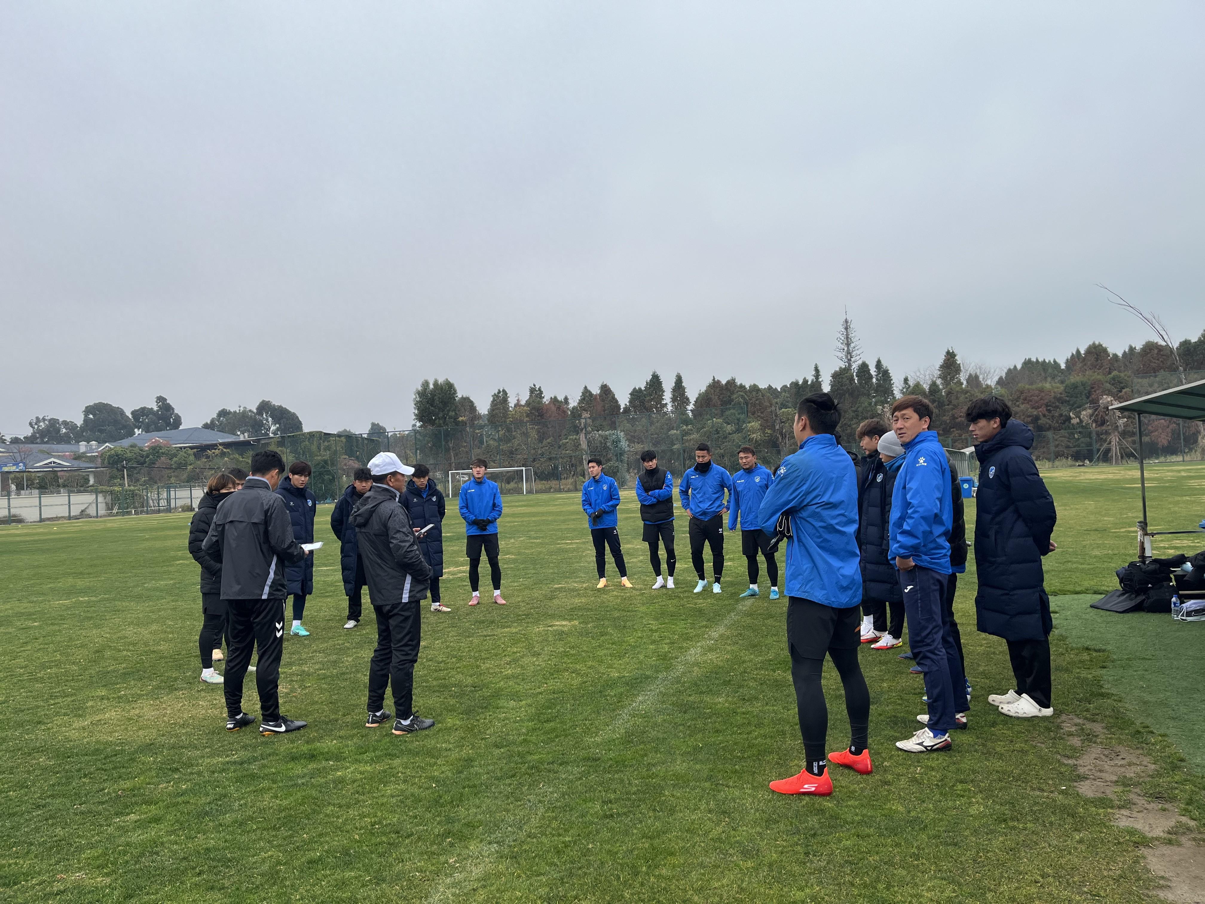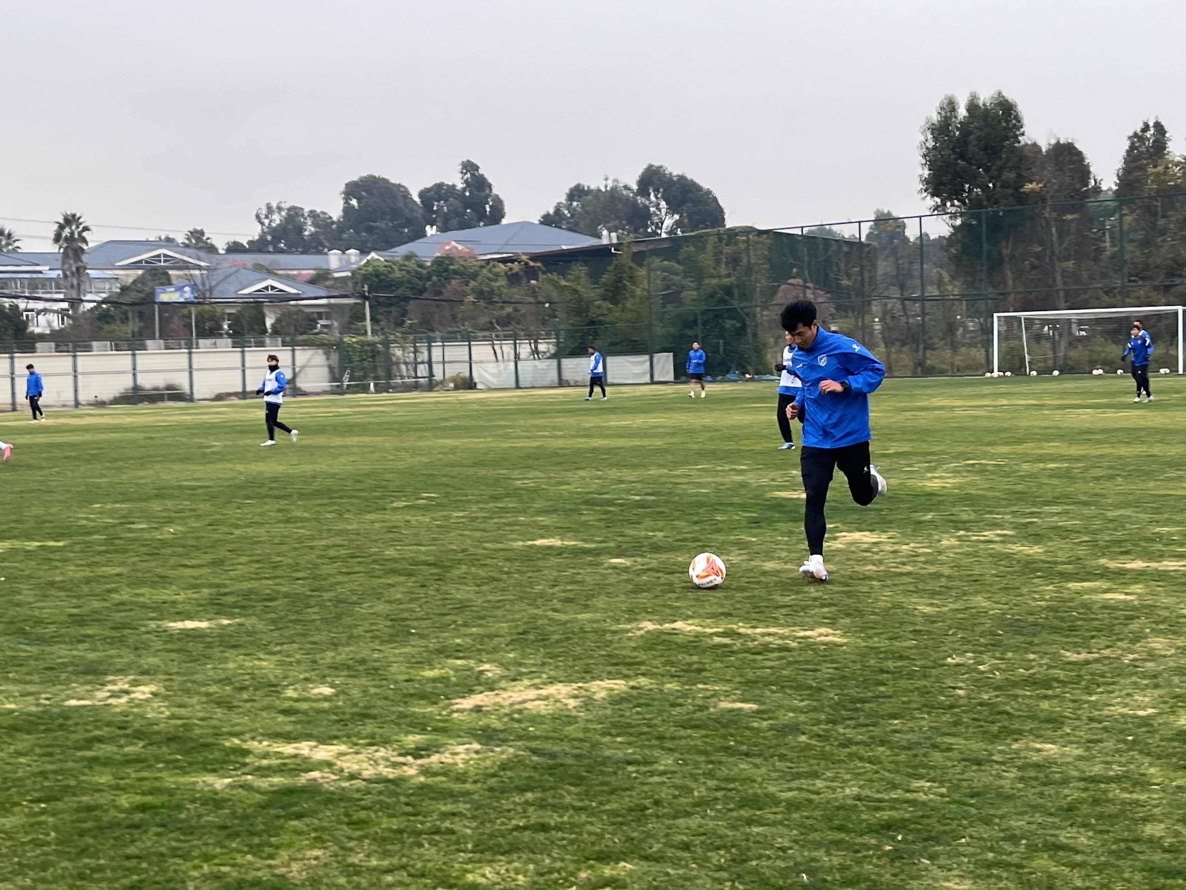 昆明气温骤降,寒意袭人,但海埂训练基地内却是一片热火朝天的景象。昆明队的球员们冒着严寒,在绿茵场上积极投入赛前训练,为即将到来的这场特殊对决做最后准备。传球、接球、射门练习井然有序,半场攻防演练紧张激烈,球员们奔跑、呼喊、汗水挥洒,每一个动作都透露出认真的态度和对比赛的期待。