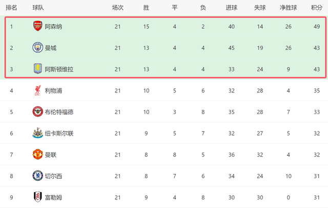 由于本轮曼城和维拉也分别战平布莱顿和水晶宫,因此阿森纳的平局,对于他们来讲,并没有产生太大的影响。截至目前,英超争冠3强本轮全部踩下刹车后,在积分榜上阿森纳依然领先6分,榜首位置非常稳固。对阿森纳更为有利的是,他们与其他2支争冠球队已经踢了3场比赛,其中对阵维拉1胜1负,此外主场还战平了曼城。也就是说,本赛季阿森纳只剩下客场和曼城一场争冠大战了。