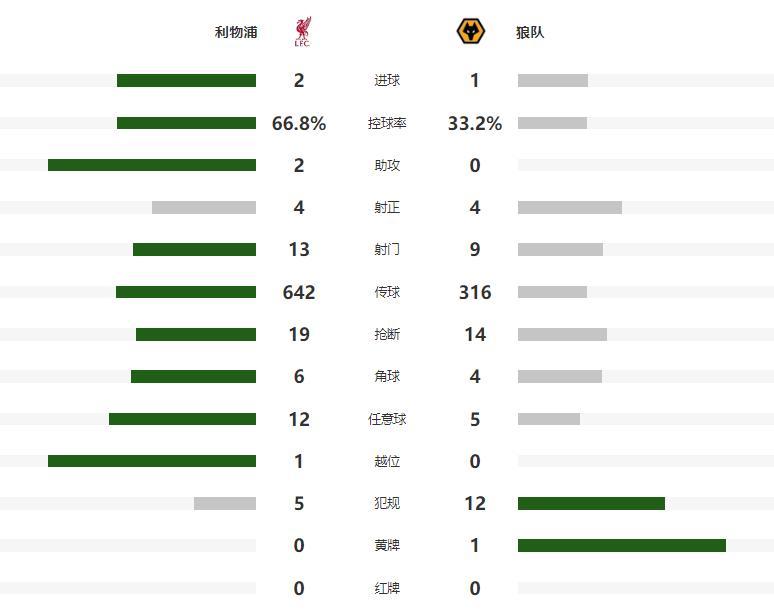 第67分钟维尔茨在底线附近狂秀个人技术,轻松过掉防守球员后倒三角传中,可惜赫拉芬贝赫的推射直接放了高射炮,余下的时间,狼队也发起了疯狂的反扑,但利物浦没有再给对手进球的机会,如愿将1球的优势保持到了最后。